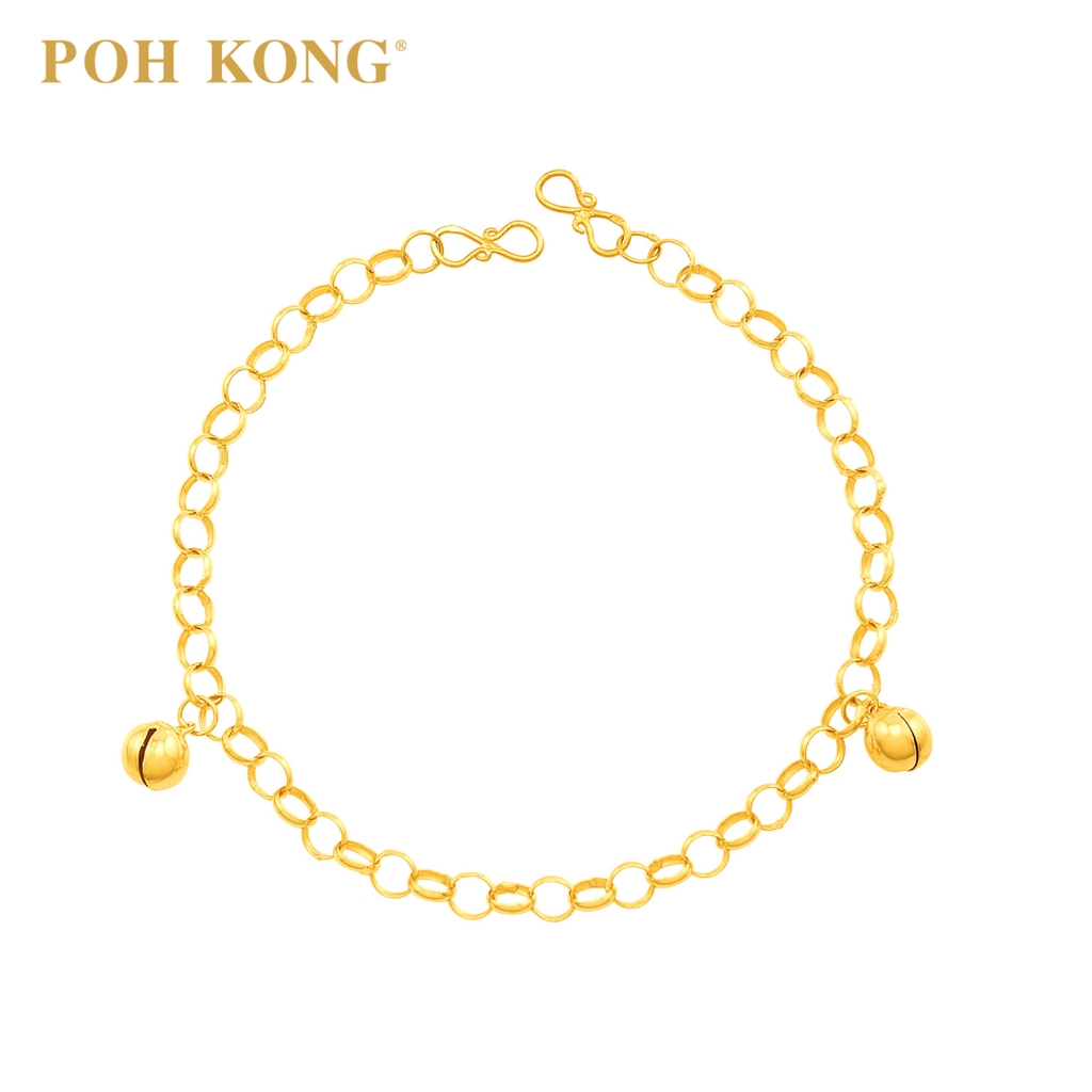 Poh Kong 916 22k Yellow Gold Double Bell Bracelet Shopee Malaysia